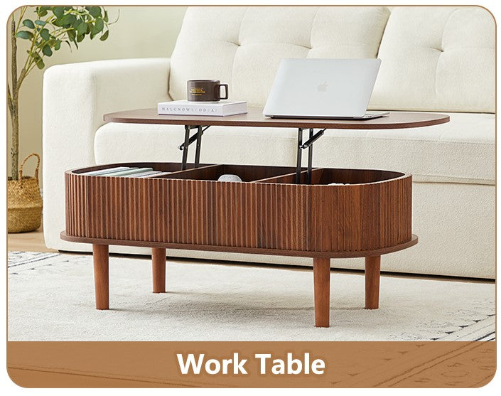 This coffee table offers more than meets the eye : lift, store, and style your space with effortless elegance.