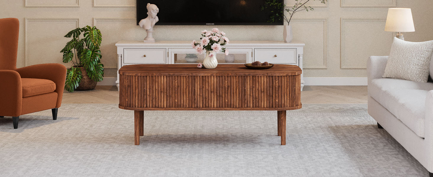 The fluted design and natural walnut tones make this table more than just furniture—it's a centerpiece that complements your lifestyle. Clean, modern, and thoughtfully designed, it blends style and functionality for a refined living experience.